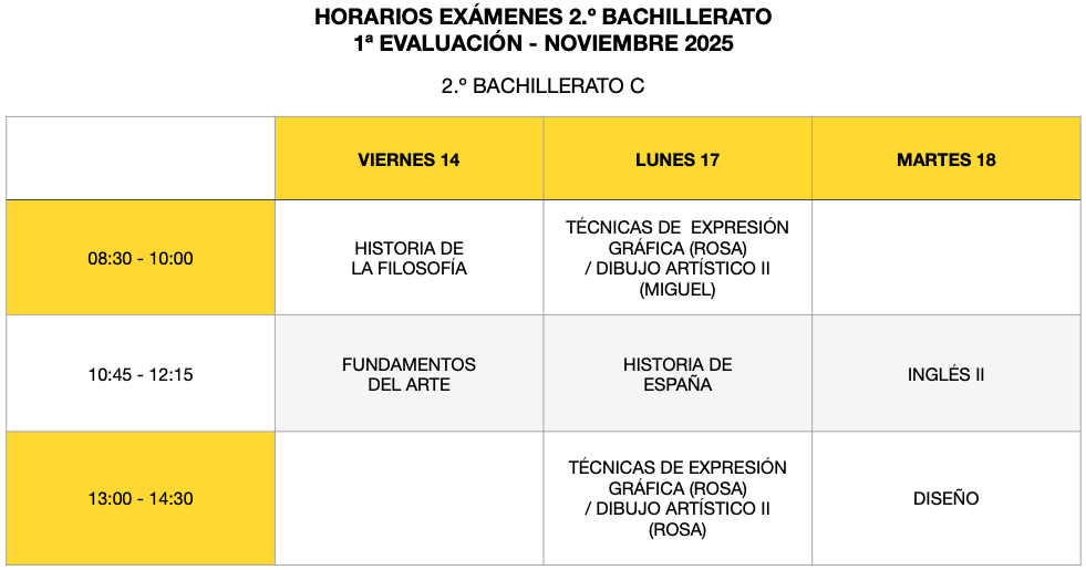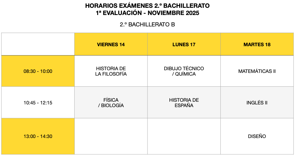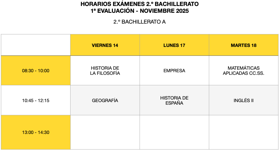 HORARIO DE EXÁMENES DE 2º DE BACHILLERATO